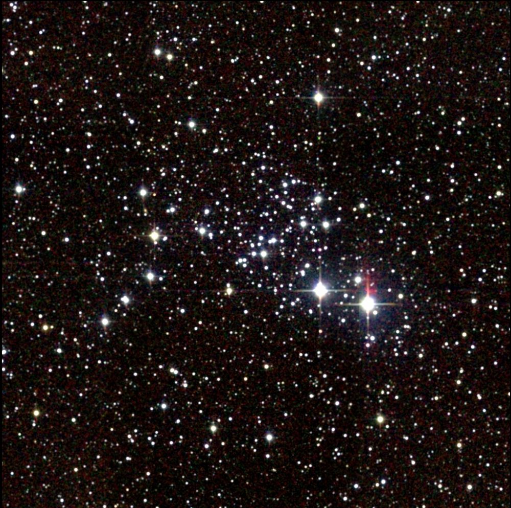 NGC 2477 is an open cluster located near NGC 2451. It has an apparent magnitude of 5.8 and is about 3,600 light years distant from the Sun. It contains about 300 stars and is believed to be about 700 million years old.